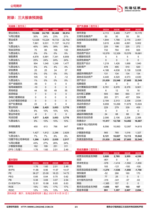 投资建议:我们预测公司2023-2025年归属于母公司净利润分别为16.13/20.35/25.17亿元,对应EPS分别为1.60/2.01/2.49元,当前股价对应PE分别为23.00/18.23/14.73倍,维持“买入”评级。