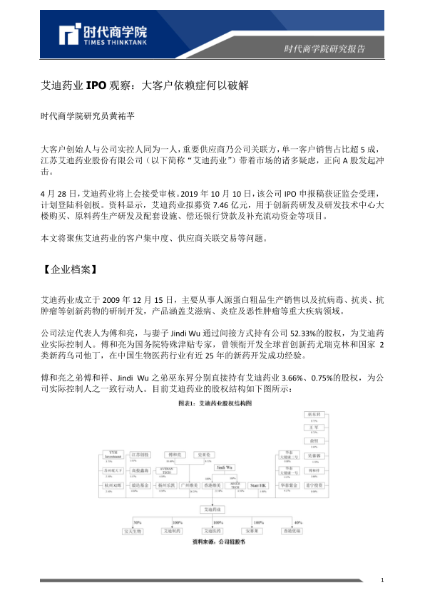 天普生化的创始人正是艾迪药业的实际控制人傅和亮。傅和亮于1993年创立天普生化,后于2004年和2010年先后将股权转让给上海实业和奈科明公司,由此退出了天普生化的股东名单。而艾迪药业成立于2009年,从种种迹象来看,该公司的业务发展主要依赖于天普生化。这种历史渊源和业务深度绑定关系,使得市场对艾迪药业的业务独立性和持续盈利能力产生深层担忧。