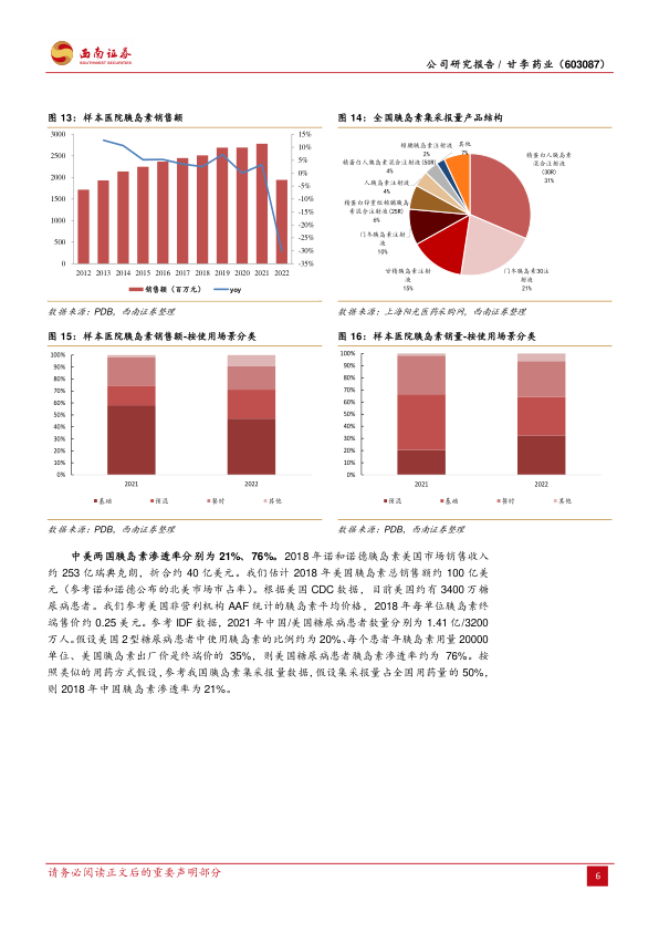 推荐逻辑:1)公司集采后胰岛素销量大幅提升推动收入快速增长,]2022年我国胰岛素市场规模超200亿元,渗透率仍有较大提升空间,甘李药业胰岛素产品集采中标后大幅放量,2023H1国内收入同比增长约35%,国内胰岛素制剂销量同比增长104.7%;2)三代胰岛素海外市场上市申请获受理,胰岛素出海长期利润空间可观,公司授予Sandoz三款三代胰岛素在欧美等区域的销售权,相关产品BLA申请陆续获得FDA及EMA正式受理,欧美市场长期利润增长空间广阔;3)股权激励目标彰显公司信心,2023-2025年业绩考核目标分别为3、6、11亿元,期间业绩目标复合增长率超过90%。
