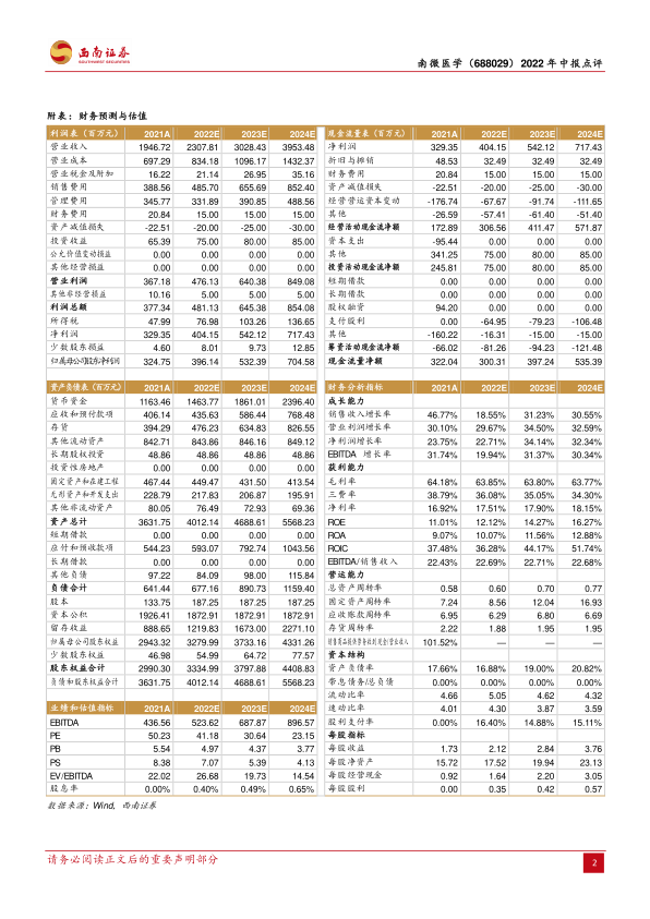 西南证券对南微医学的未来业绩持乐观态度。预计公司2022年至2024年的归母净利润将分别达到4亿元、5.3亿元和7亿元。这对应着未来三年归母净利润的增长率分别为21.98%、34.40%和32.34%,显示出公司强劲的盈利增长潜力。