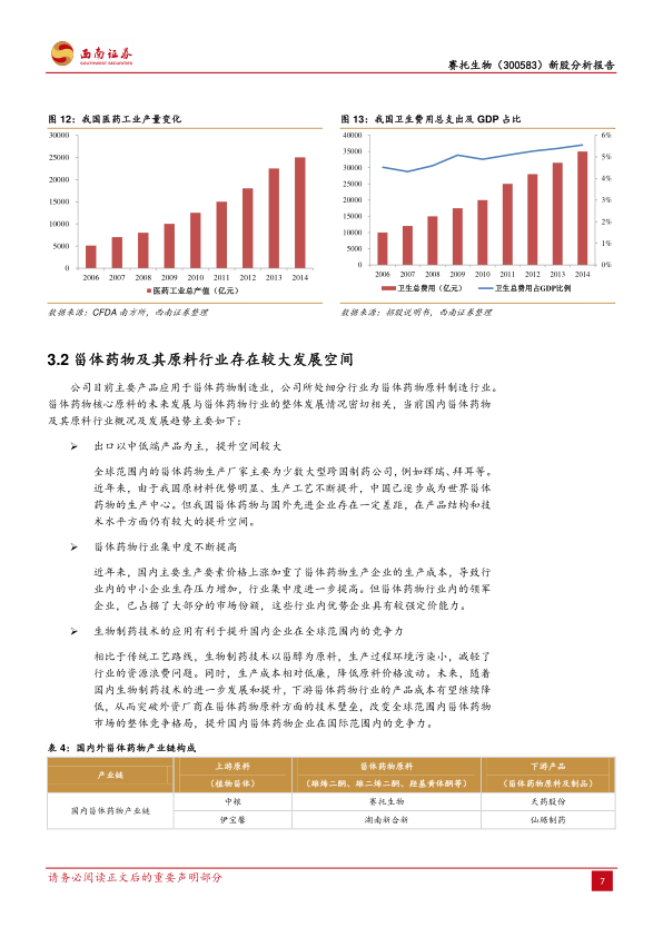 报告分析认为,中国医药工业正处于高速增长阶段,有望成为全球第二大药品市场,为甾体药物原料行业提供了巨大的发展空间。在全球甾体药物生产向中国转移的趋势下,赛托生物的生物制药技术优势将进一步提升其国际竞争力。基于对公司行业地位、成长性和盈利能力的综合评估,报告给出了合理的盈利预测和投资建议,并提示了潜在的市场竞争和产品替代风险。