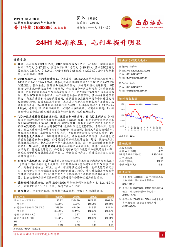 本报告对普门科技(688389)2024年中报进行了深度分析,核心观点如下:
