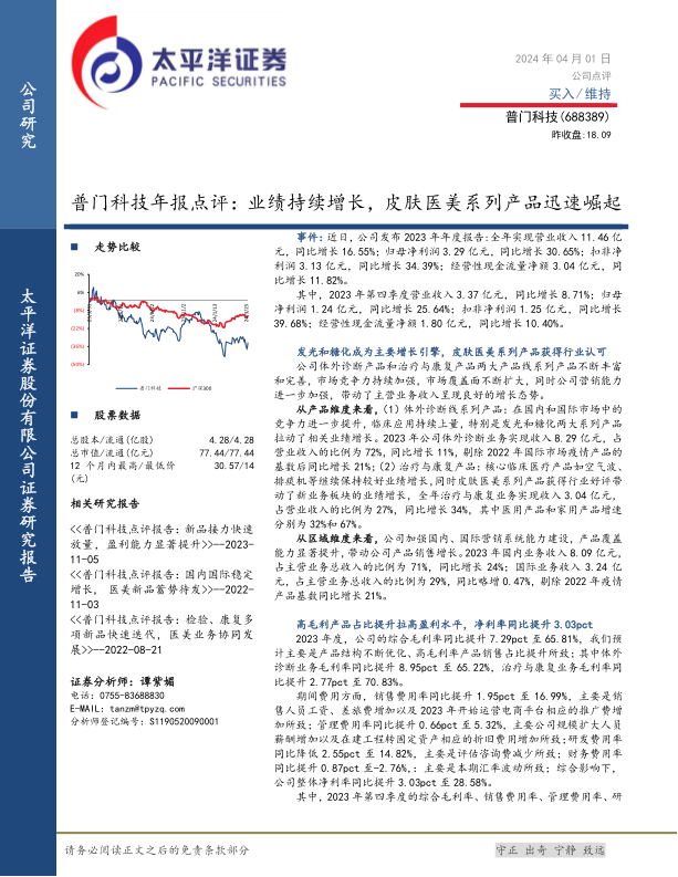 普门科技年报点评:业绩持续增长,皮肤医美系列产品迅速崛起