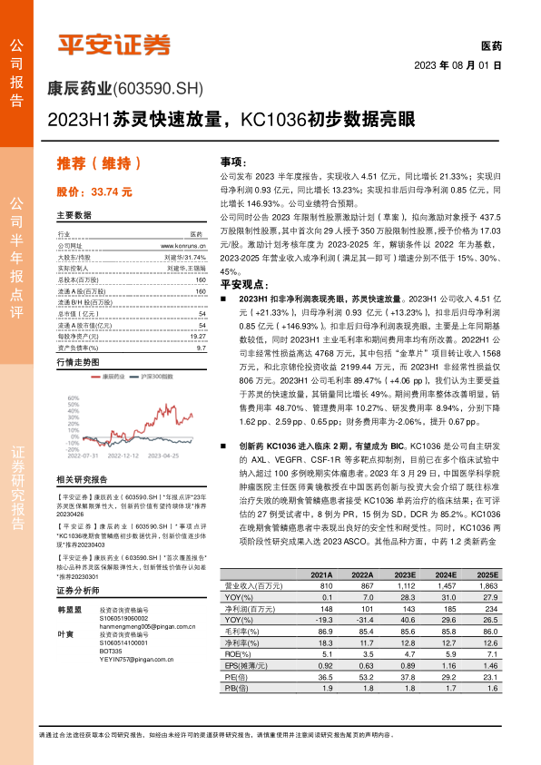 2023H1苏灵快速放量,KC1036初步数据亮眼