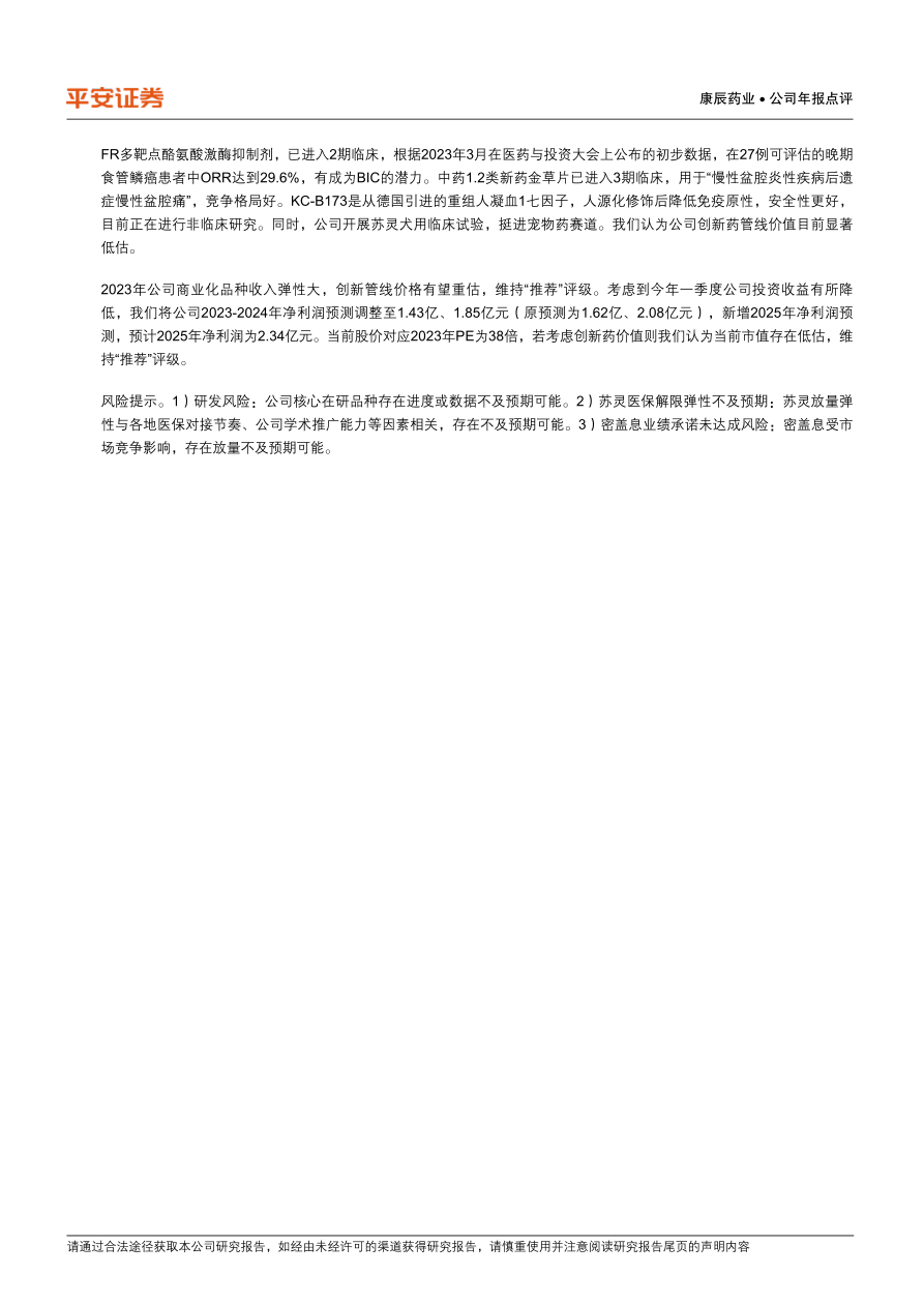 本报告对康辰药业2022年年报及2023年一季报进行了分析,核心观点如下: