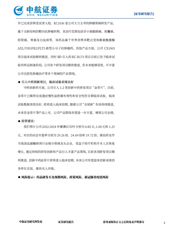 风险提示:药品研发不及预期风险、政策风险、新冠肺炎疫情风险
