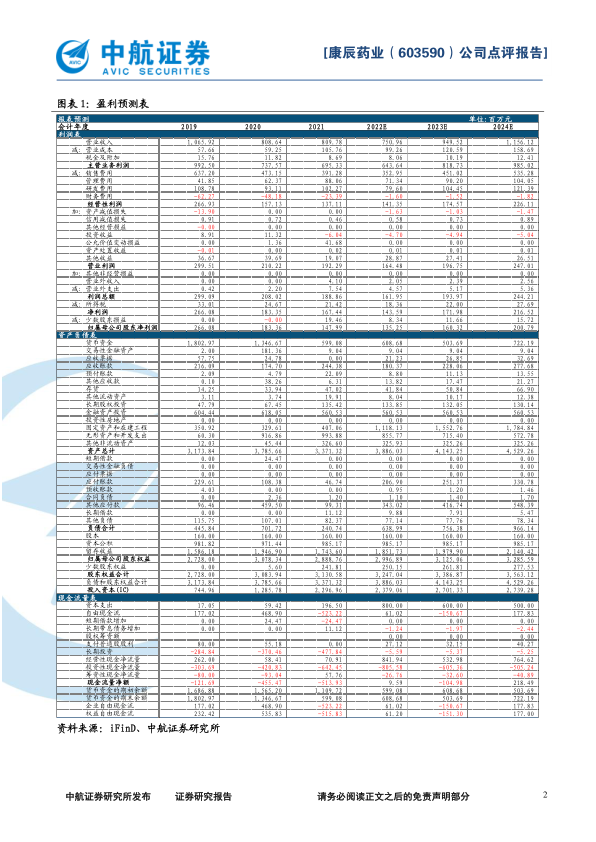 康辰药业2021年及2022年一季度业绩受到核心产品降价和疫情的双重影响,短期业绩承压。
