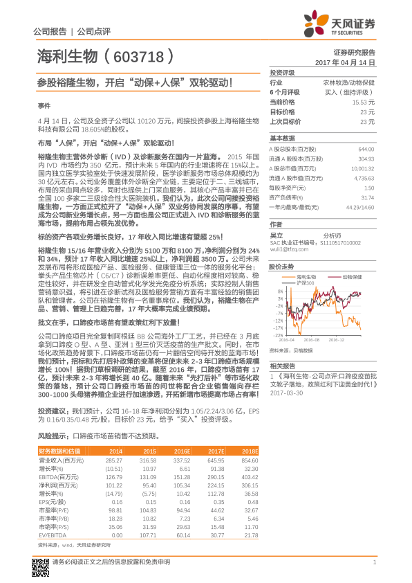 参股裕隆生物,开启“动保+人保”双轮驱动!