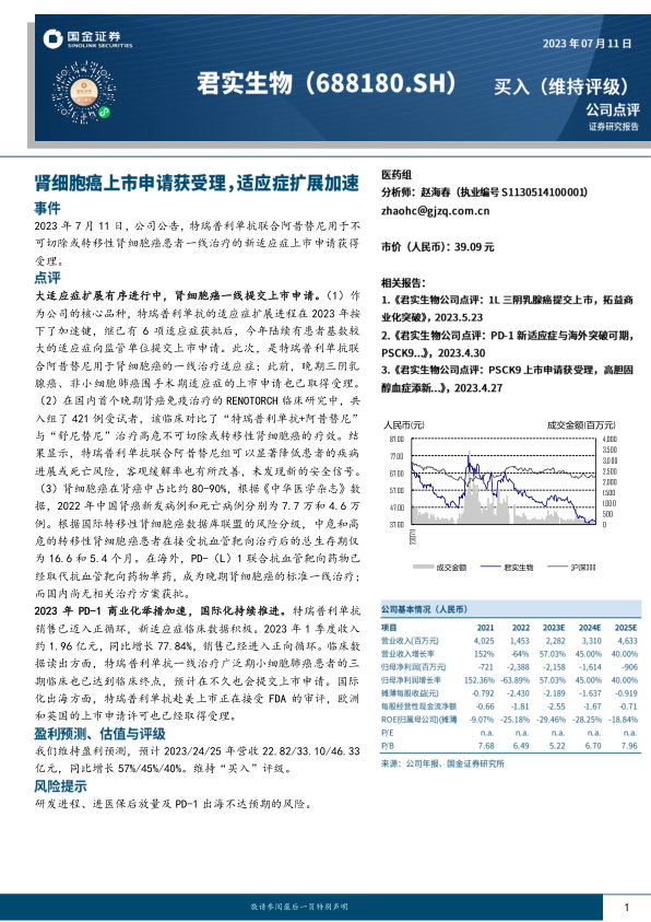 研发进程、进医保后放量及PD-1出海不达预期的风险。