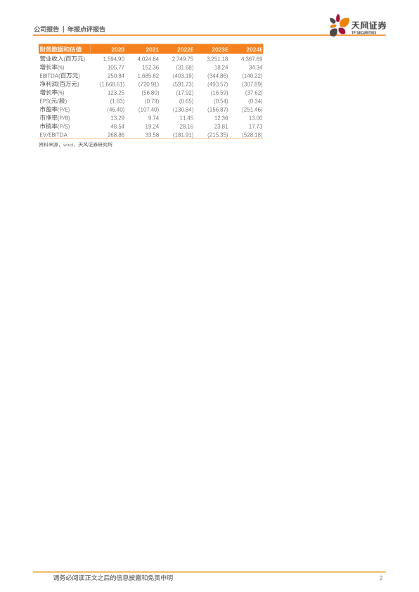 考虑到特瑞普利单抗降价以及中和抗体收入减少,我们将 2022-2023 年收入由 37.67、 48.23 亿元下调至 27.50、 32.51 亿元,净利润由-3.63、 0.9 亿元下调至-5.92、 -4.94 亿元。我们预计 2024 年收入为 43.68 亿元,实现归母净利润-3.08 亿元。维持“买入”评级。