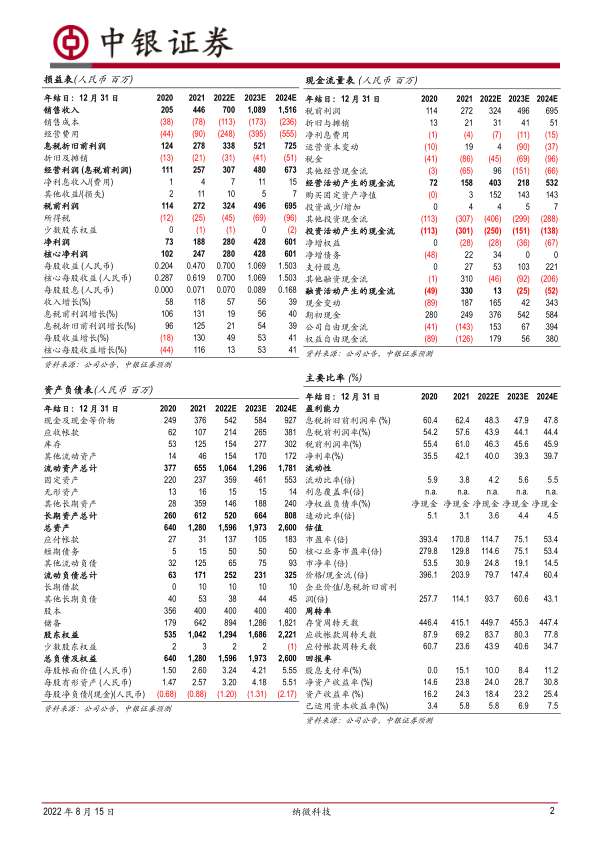 本报告分析了纳微科技2022年上半年的业绩表现,指出公司在主营业务方面保持了持续高增长,并通过并购等方式不断完善产品线布局,提高市场竞争力。同时,公司在新产品研发和人才投入方面也持续加大力度,为未来的发展奠定了基础。维持对纳微科技的增持评级,看好公司未来的发展前景。