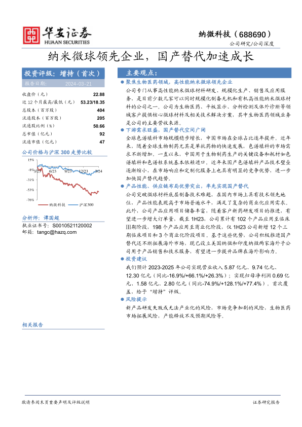 纳米微球领先企业,国产替代加速成长