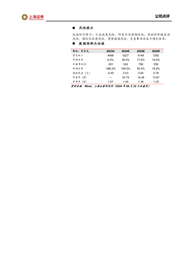 预计公司2024-2026年营业收入分别为52.27/61.48/72.92亿元,同比增长28.49%/17.63%/18.60%;归属于上市公司股东的净利润分别为5.24/7.88/9.36亿元,EPS分别为0.43/0.64/0.76元。维持“买入”评级。