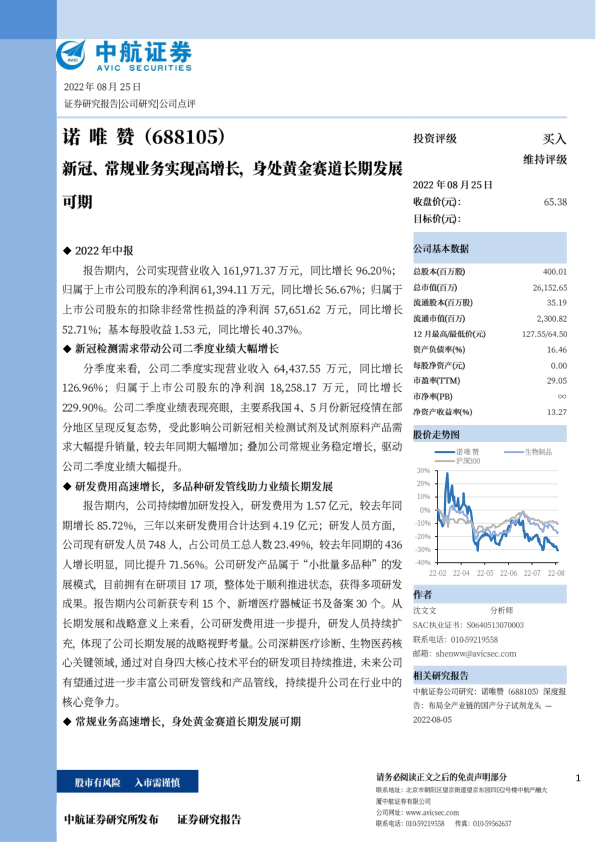 新冠、常规业务实现高增长,身处黄金赛道长期发展可期