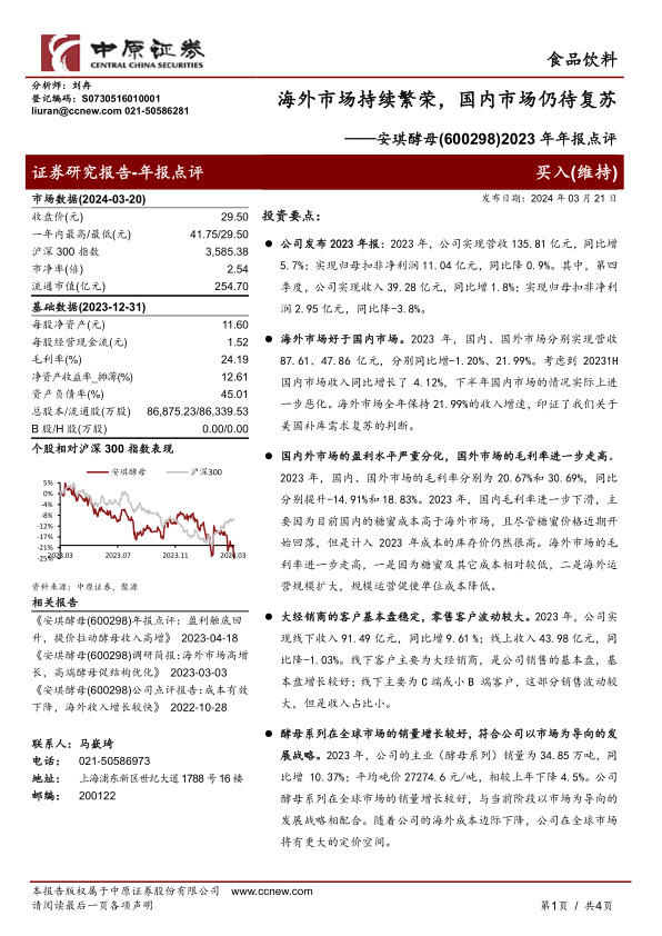 安琪酵母(600298)