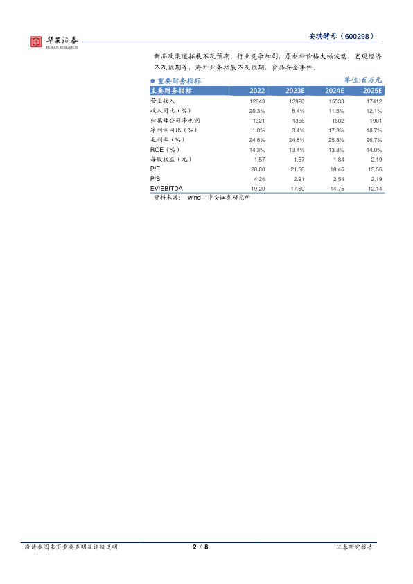 本报告认为安琪酵母凭借其全球化布局、规模优势和成本控制能力,以及海外市场拓展的潜力,未来业绩有望持续增长。首次覆盖,给予“买入”评级,但同时也提示了相关风险,包括新品拓展、行业竞争、原材料价格波动、宏观经济、海外业务拓展和食品安全等方面。