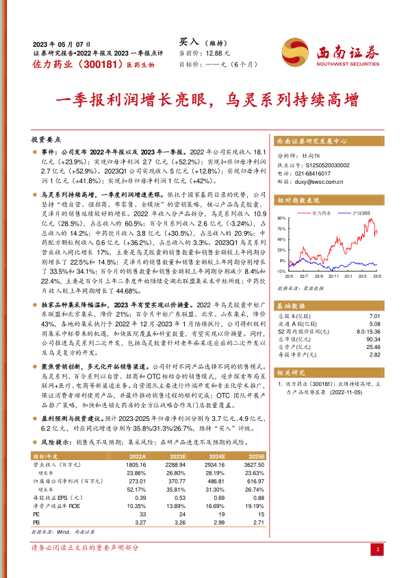 一季报利润增长亮眼,乌灵系列持续高增