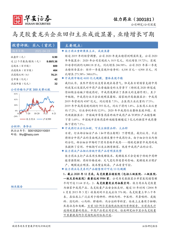 乌灵胶囊龙头企业回归主业成效显著,业绩增长可期