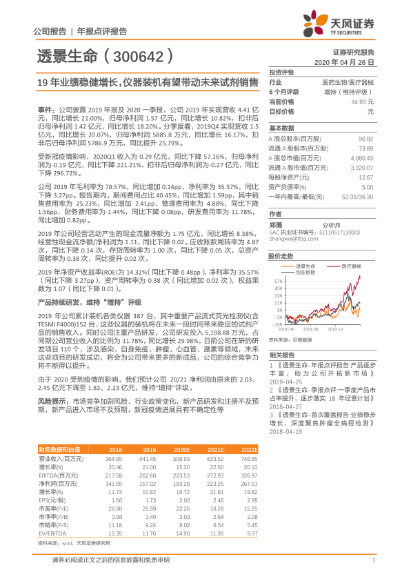 19年业绩稳健增长,仪器装机有望带动未来试剂销售