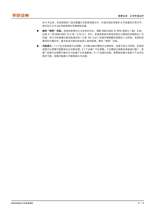 维持“推荐”评级,关注疫情恢复和海外市场拓展
