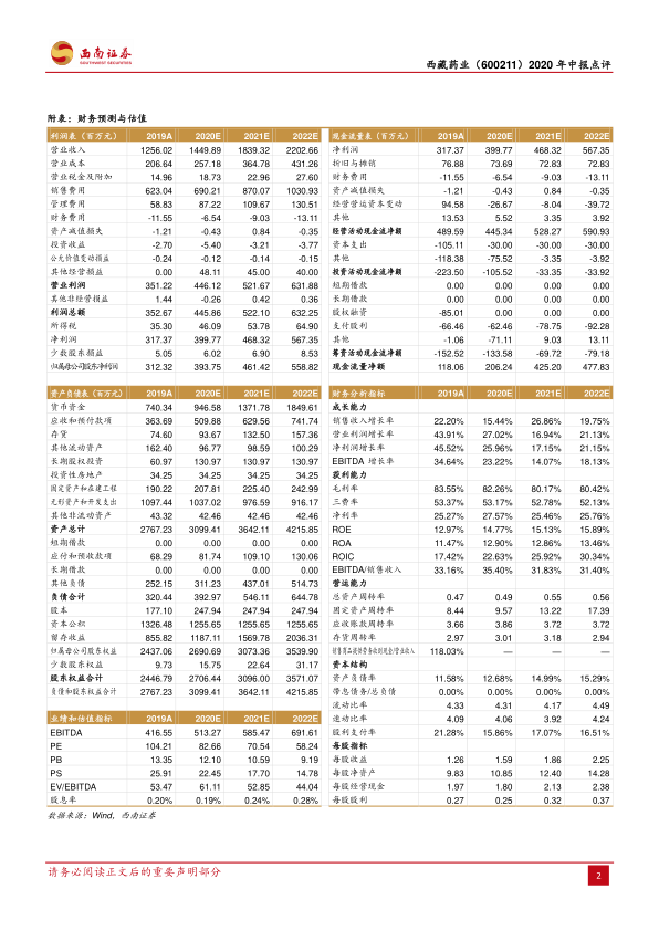 本报告对西藏药业(600211)2020年中报进行了深度分析,核心观点如下:
