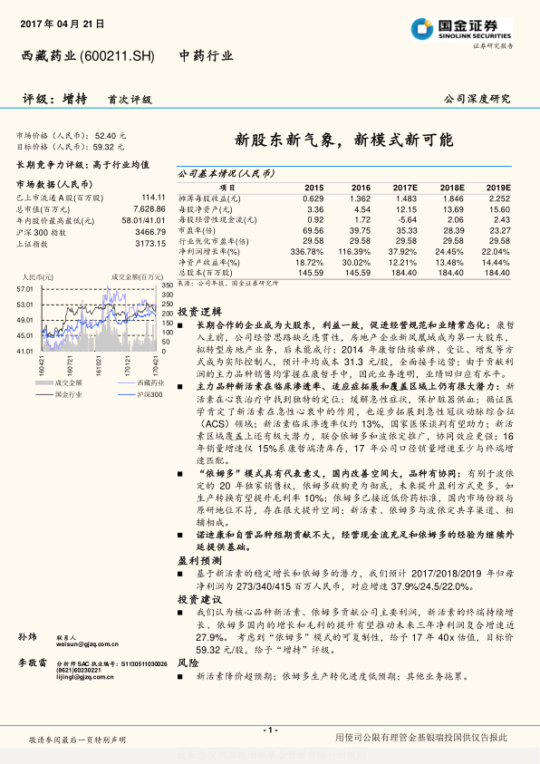 中心思想 康哲入主重塑经营,核心产品驱动增长 康哲药业成为西藏药业实际控制人,通过股权整合和业务聚焦,有效解决了公司过往经营策略不连贯的问题。此举促使股东利益高度一致,经营透明度提升,并推动公司业绩回归常态化增长,2015-2016年净利润增速分别超过300%和100%,2016年净资产收益率达到30%。 公司核心产品新活素和依姆多展现出巨大的市场潜力。新活素在急性心衰和急性冠脉综合征(ACS)治疗中具有独特优势,尽管目前临床渗透率仅约13%,但随着循证医学的肯定、国家医保谈判的助力以及区域覆盖的拓展,其销量有望大幅提升。依姆多通过彻底收购模式,不仅能提升毛利率,且作为接近低价药标准的原研产品,在国内市场份额(5.4%)远低于其原研地位,存在巨大的增长空间。 创新模式与充足现金流,奠定外延发展基础 “依姆多”的收购模式为公司未来外延式发展提供了可复制的范本,即通过彻底收购过专利原研药