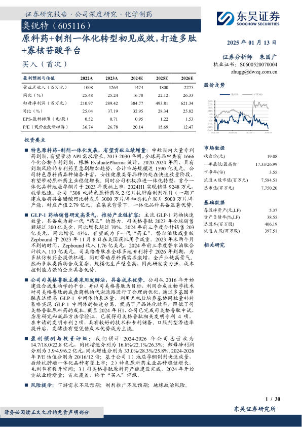 原料药+制剂一体化转型初见成效,打造多肽+寡核苷酸平台