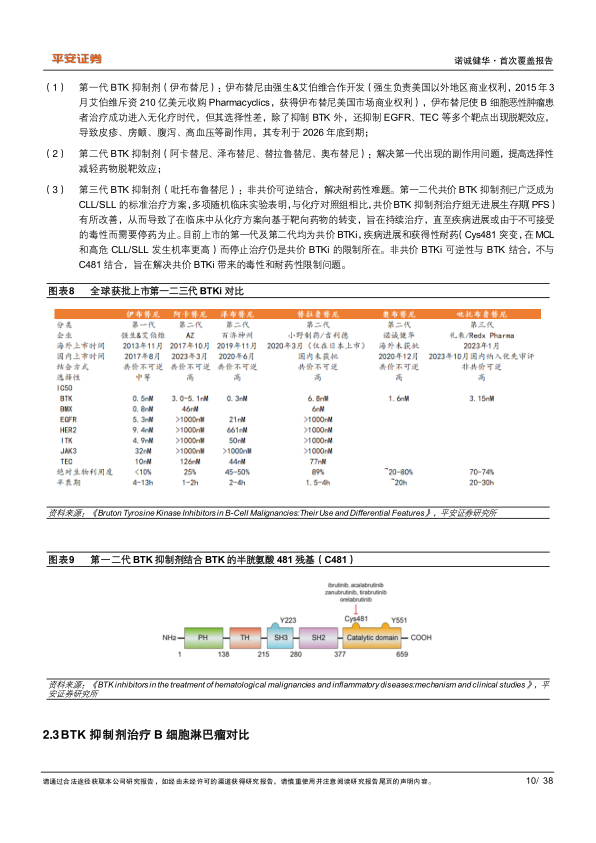 奥布替尼是公司核心产品,其BTK靶点在B细胞淋巴瘤和自身免疫疾病中均取得显著进展。BTK是B细胞受体(BCR)信号通路中的关键激酶,通过靶向BTK可调控BCR信号传导,治疗多种B细胞淋巴瘤。此外,BTK在巨噬细胞Fc受体信号通路中也发挥作用,使其成为治疗自身免疫疾病的新靶点。