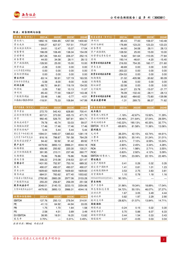 盈利预测与投资建议。预计 2022-2024 年 EPS 分别为 0.15 元、0.22 元、0.3元,对应 PE 分别为 65/45/33 倍,维持“持有”评级。