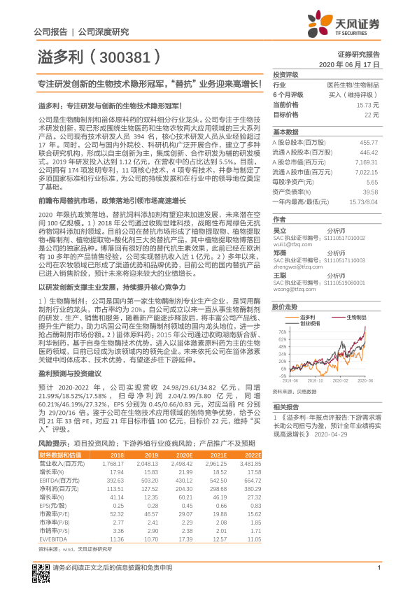 随着2020年“限抗”政策的全面落地,饲料中促生长类药物添加剂被禁用,为替抗饲料添加剂市场带来了百亿级的巨大发展机遇。溢多利通过前瞻性布局和并购,成功切入替抗市场,其独家品种博落回散及多元化的替抗解决方案,结合公司在农牧领域的渠道优势和战略投资者支持,有望成为公司未来业绩高速增长的新引擎。