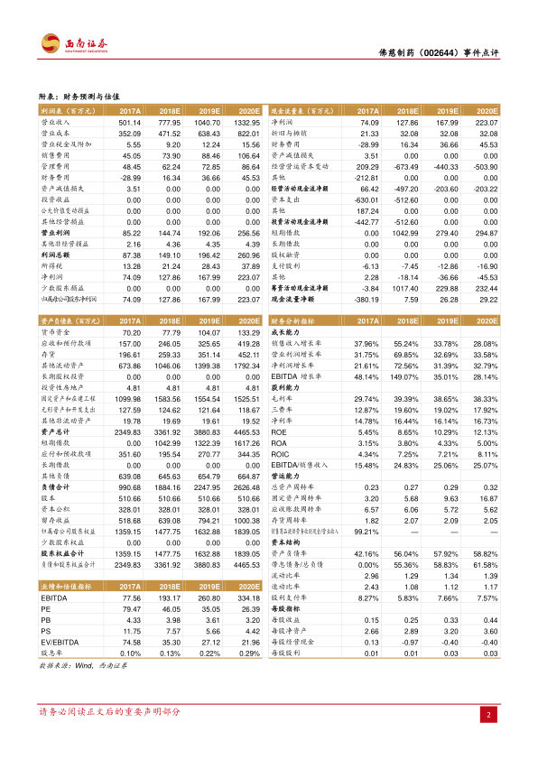 分析师认为,佛慈制药具有品牌价值,新产能投产将解决生产瓶颈问题,配合市场销售推广有望迎来快速增长期,经营拐点明显。高毛利的六味地黄丸、阿胶等产品收入占比逐渐提升将优化盈利结构,且公司将分享中药配方颗粒市场及大健康领域快速增长的红利,前景值得期待。因此,维持“买入”评级。