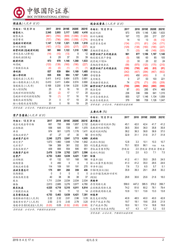 公司作为糖尿病药物领域龙头,具备渠道优势,后续三代胰岛素产品推进顺利,上市后将形成产品线组合优势,有望快速放量。由于2018年受渠道去库存影响,Q3、Q4销售收入下滑,拖累全年业绩大幅低于预期,中银国际证券下调了公司2019-2020年度盈利预测。预期2019-2021年净利润分别为9.84亿元、11.69亿元和14.05亿元,对应EPS分别为0.48元、0.58元和0.69元。当前股价对应市盈率分别为35.0倍、29.5倍和24.5倍。基于对公司长期发展的看好,维持“增持”评级。