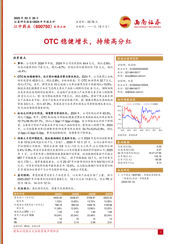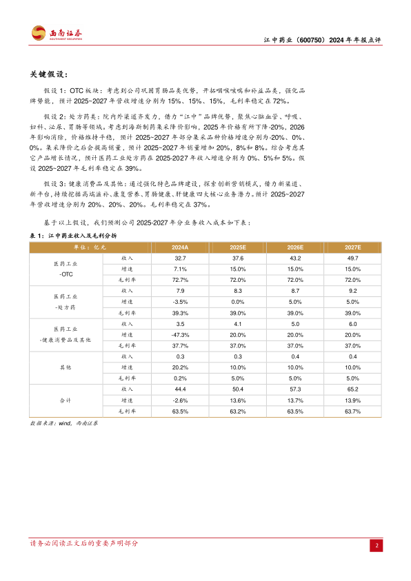 本报告对江中药业2024年年报进行深度分析,核心观点如下:
