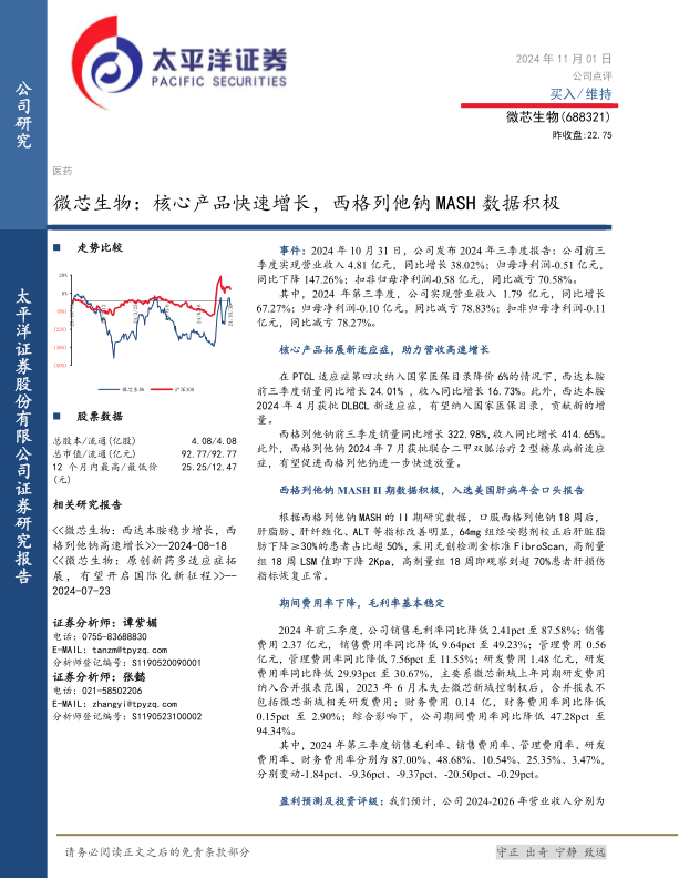 微芯生物:核心产品快速增长,西格列他钠MASH数据积极