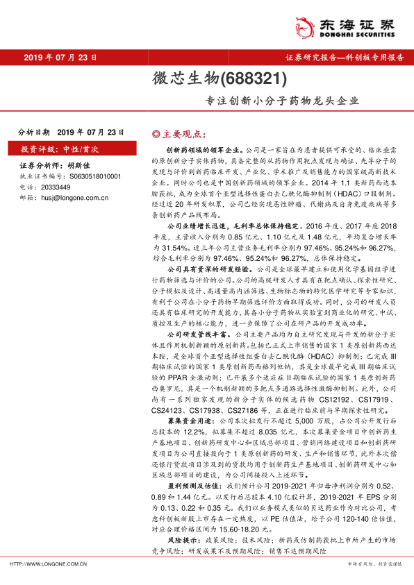 公司近年来展现出强劲的业绩增长势头,主营业务收入年均复合增长率高达31.54%,且毛利率长期保持在95%以上的高位,显示出其创新药产品的高附加值和市场认可度。尽管研发投入占比较高,但这是创新药企业发展的必然阶段,也体现了公司对未来增长的坚定投入。在全球肿瘤药物市场稳步增长、靶向药物使用规模迅速扩大以及国家卫生体制改革持续推动创新药行业发展的背景下,微芯生物凭借其前瞻性的研发管线和市场策略,具备巨大的市场发展潜力和盈利空间。本次募集资金将进一步强化其研发、生产和销售能力,为公司未来的持续增长奠定基础。