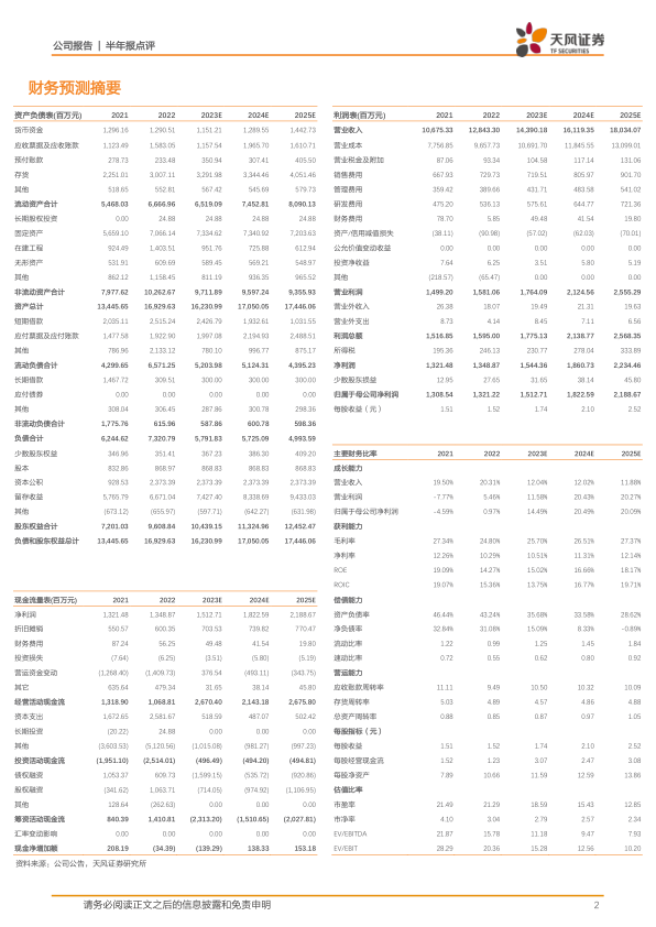根据半年报业绩,略调整盈利预测,预计23-25年公司收入增速分别为 12%/12%/12%(前值为 15%/17%/16%),归母净利润增速分别为14%/20%/20%(前值为20%/21%/20%),对应PE 分别为19X/15X/13X,维持“买入”评级。