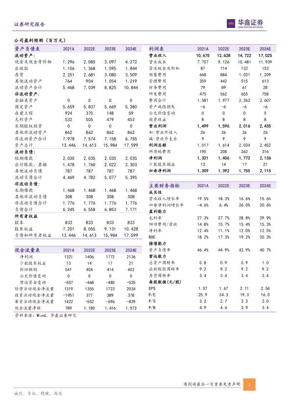 暂不考虑增发影响,预测 2022-2024 年 EPS 为 1.67/2.11/2.54 元,当前股价对应 PE 为 24/19/16 倍, 维持“买入”投资评级。