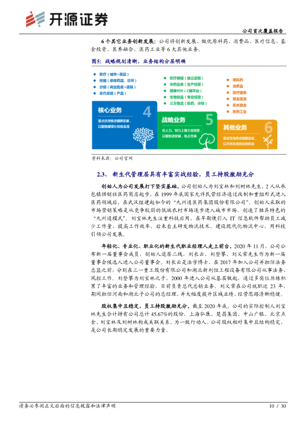 新一届董事会成员拥有丰富的业务经验和管理经验,承接公司管理与文化体系但更具创造力;未来公司重点发展:院外市场分销端,大力推进总代总销业务,向“配送+推广”综合服务商转型,提升盈利能力;零售端,拓展“万店联盟”计划,促进数字零售业务发展,提升终端市场占有率;工业端,以全产业链为基础,做强中药“九信”品牌,打造中药全产业链互联网平台;医疗健康及技术服务端,打造汇集C端消费者的社交、交易、医疗健康服务的大健康服务平台。