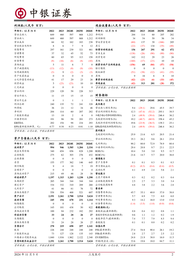 尽管2024年的盈利预测因减值影响有所下调,但2025年和2026年的盈利预测仍显示出强劲的增长潜力,特别是2025年归母净利润预计同比增长246.4%,2026年同比增长36.2%。这反映了公司在度过短期调整期后,将进入快速增长通道。考虑到公司经营拐点已经出现,且国际化业务发展前景广阔,本报告维持对三友医疗的“买入”评级。