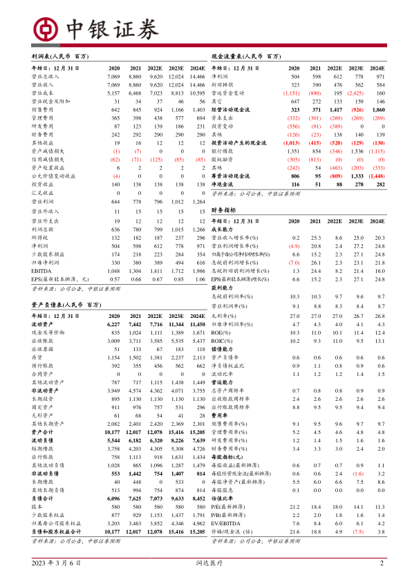 润达医疗作为院内检验科综合服务领域的领先企业,其商业板块的深厚壁垒和工业板块的差异化创新策略,使其在医保控费和医疗体系升级的大背景下具备显著优势。尽管2022年受到公共卫生事件的短期影响,但随着常规诊疗的恢复和行业集中度的提升,公司业绩有望实现强劲反弹。报告基于对公司业务恢复和工业板块发展前景的积极展望,上调了2023-2024年的盈利预测,并维持“增持”评级,认为公司核心价值不变,未来增长潜力可期,但需关注客户开发、新品研发及政策变化等潜在风险。