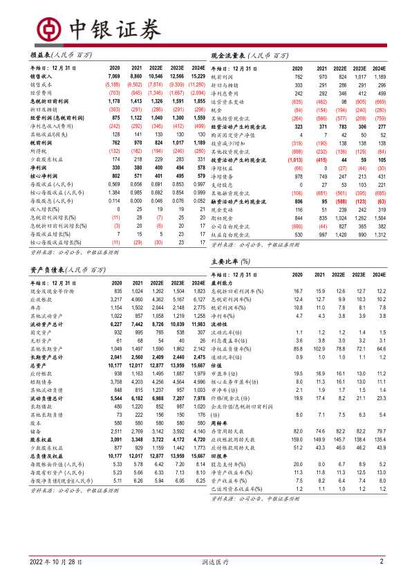 我们预计公司 2022-2024 年归母净利润为 4.00/4.94/5.78 亿元,考虑公司核心价值是长期发展的基础,随着疫情得到控制公司非新冠业务有望稳步恢复,盈利能力有望恢复至正常水平。维持增持评级。