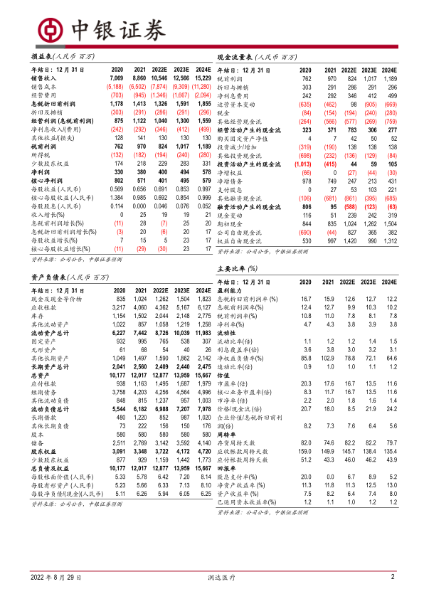 本报告分析了润达医疗2022年上半年的业绩表现,认为公司短期业绩受到疫情冲击,但核心价值未变,二季度业绩已明显好转,全年有望进一步恢复。公司集约化服务业务顺应医改政策方向,第三方实验室业务作为补充,工业板块通过自研及合作发展前景广阔。维持增持评级,但需关注应收账款、客户开发、新品研发、政策及疫情等风险。