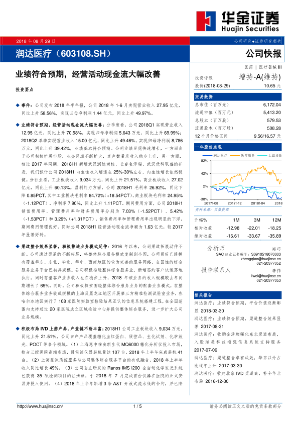 本报告对润达医疗(603108.SH)2018年半年报进行了分析,核心观点如下:
