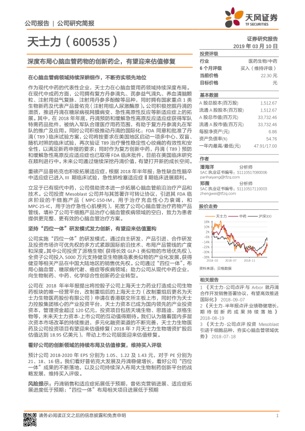 随着创新成果的逐步落地和多层次资本市场改革的深化,天士力生物医药的上市计划及天士力资本的战略投资有望驱动公司整体估值修复。公司财务表现预计将保持稳健增长,其在创新领域的持续布局和战略转型为其带来了显著的未来增长潜力,因此维持“买入”评级。