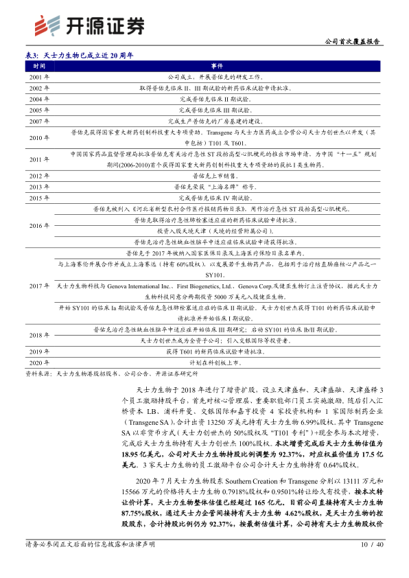 - 核心品种注射用重组人尿激酶原(普佑克)于2011年成功上市。2020年5月,公司公告拟分拆天士力生物至科创板上市。