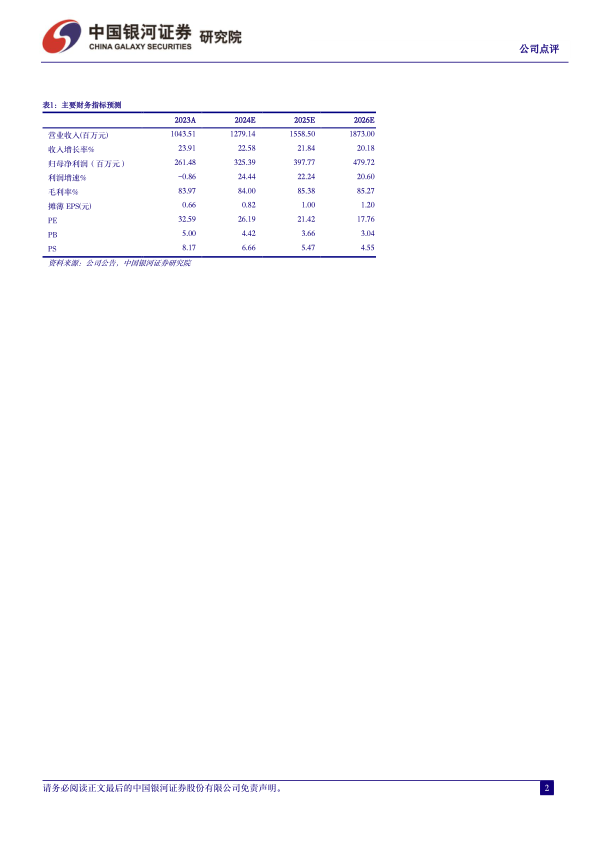 一季度业绩符合预期,盈利能力持续增强。2024Q1公司产生股权激励费用摊销842.33万元,剔除相关费用影响后(不考虑所得税影响)实现归母净利润7,262.23万元(+26.70%),扣非净利润6,540.52万元(+45.13%),预计主要得益于高毛利的创新业务占比提升及经营效率优化,2024Q1公司毛利率提升0.59pct至84.46%。此外,公司2024Q1财务费用为-326.34万元(主要是定期存单利息收入增加所致),信用减值冲回77.57万元(预计主要是计提坏账准备减少及相关账款收回)。