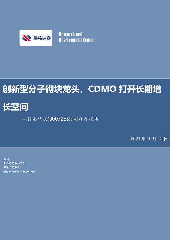 公司深度报告:创新型分子砌块龙头,CDMO打开长期增长空间