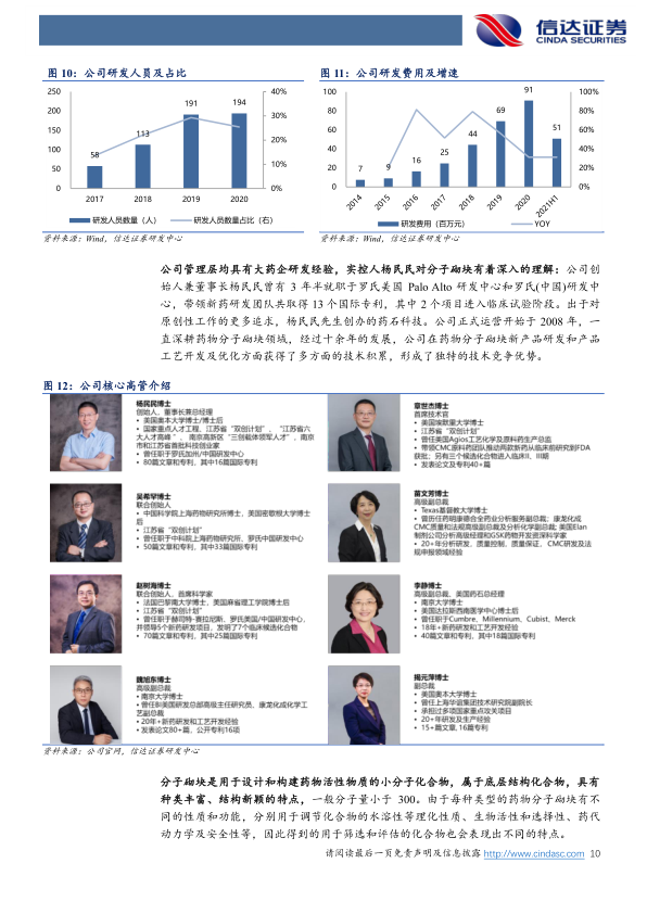 盈利预测及评级:基于在分子砌块积累的优势,公司纵向一体化布局“Non-GMP/GMP中间体-原料药-制剂”的创新药CDMO业务,搭建了DEL-T、FBDD等创新药物发现技术平台,为客户提供前端的新药筛选服务。我们预计公司2021-2023年净利润5.21/4.31/6.14亿元,EPS为2.61/2.16/3.08元,最新收盘价对应2022年86倍PE,首次覆盖,给予“增持”评级。