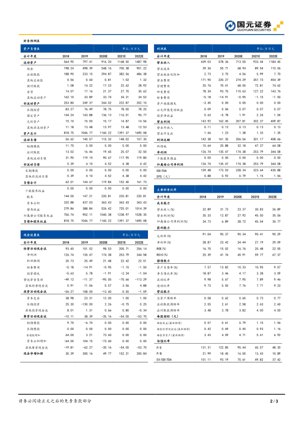 考虑到下半年疫情影响较小以及公司销售推广的加强,预计2020-2022年营业收入为7.13/9.33/11.84亿元,同比增长23.37%/30.83%/26.89%,归母净利润为1.74/2.54/3.45亿元,同比增长28.72%/45.54%/35.77%,EPS分别为0.79/1.15/1.56元,对应PE为95/66/48X,维持“买入”评级。