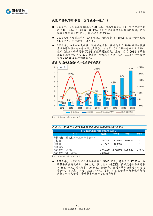 公司顺利完成2020年股权激励考核目标,并实施了2019年限制性股票激励计划预留部分授予,向102名核心管理人员及技术骨干授予79.05万股限制性股票,累计向200余名骨干授予399.65万股。若剔除股权激励费用摊销影响,2020年归母净利润为2.28亿元,同比增长33.2%。
